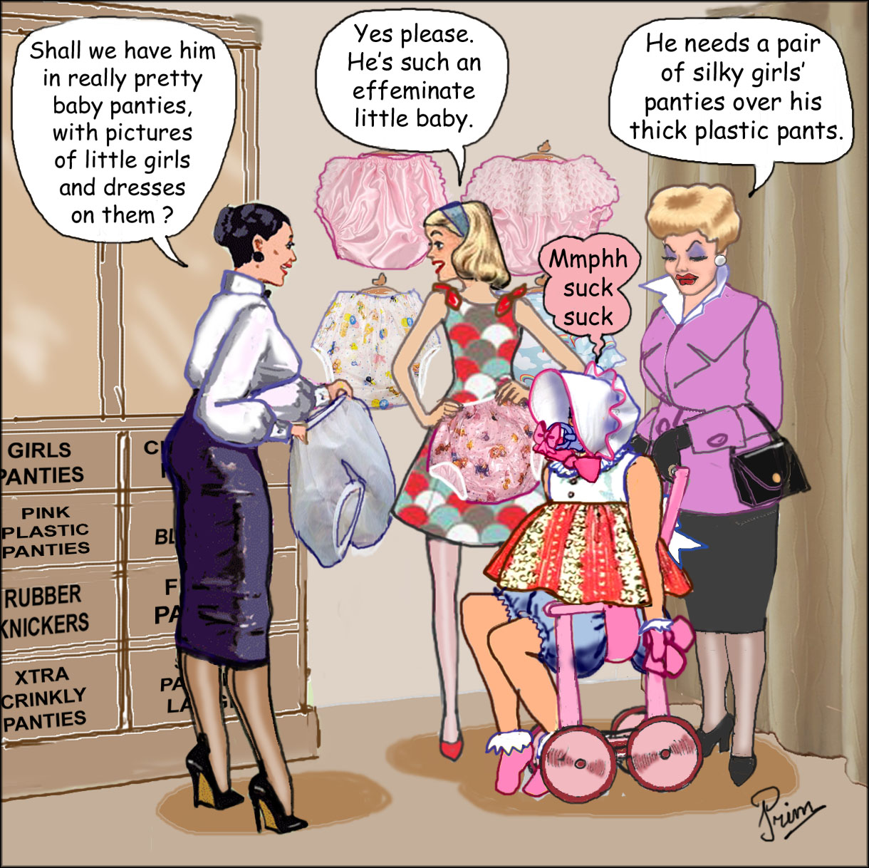You are right in saying one thing: That sexless dick has to be kept inside double-thick diapers and plastic baby panties. In fact double-thickness diapers are not enough to further emasculate that worthless member. You should be wearing 5-6 diapers in increasing size over each other, with outsize plastic panties which must show effeminate piccies all over them: toys, pacifiers, dollies. That way your women critics will know that what lies within the sissy plastic is feminized into ultra-babyhood and sissyness.