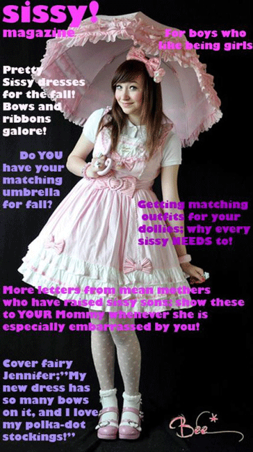 You said you want members to write in and say what parts of the Wendyhouse I like: well it's all good of course. more than just good. My favourite of all the parts in each of Prim's Petticoat Pansies is the Prissy picture. always just awesome. But has Prissy stopped contributing? That would be a tragedy. I look forward to each issue hoping there is a new Prissy toon in there. Among my favourites: Femme Boy Sissy, In love with sissy clitties and Bringing Arnold to panty.