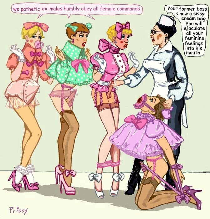 Needless to say, the sissies, if they are anything like as weak and sissy as you, darling, would melt into pitiful obedience with all of these, presenting their bared bottoms for spanking or caning, and dutifully pairing with other sissies to be as intimate with each other as they are ordered to be.