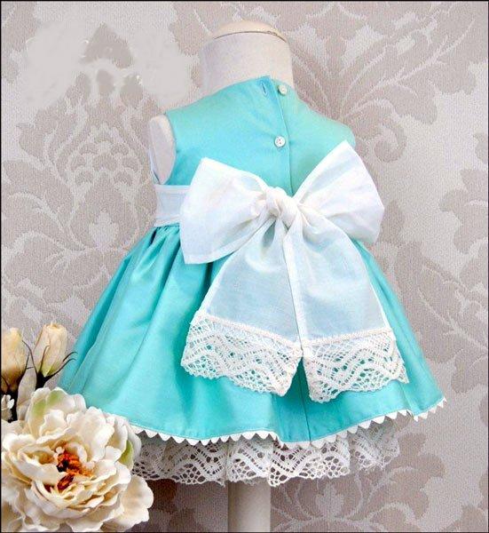 Dress 1Sundress in aqua cotton Let's start with this cutesy little cotton dress with its gorgeous bow of white cotton poplin. As soon as I saw it, I knew I wanted to put a sissy into it to go out to play with the girls in Summer. It has an integrated petticoat, trimmed with the same lace as your bow, Sweetheart. |